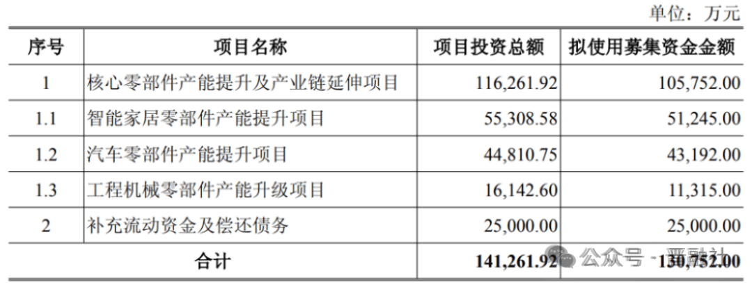 华翔股份此番大笔增资的智能家居零部件和汽车零部件项目,扶植达产后,12月25日晚间,分析毛利率 32.87%。投资总额为1.61亿元。削减检测人员依赖,提拔全体供应链协同效率。是三个子项目中规模最大的一个。将构成年产工程机械零部件10.07万吨,近年来,